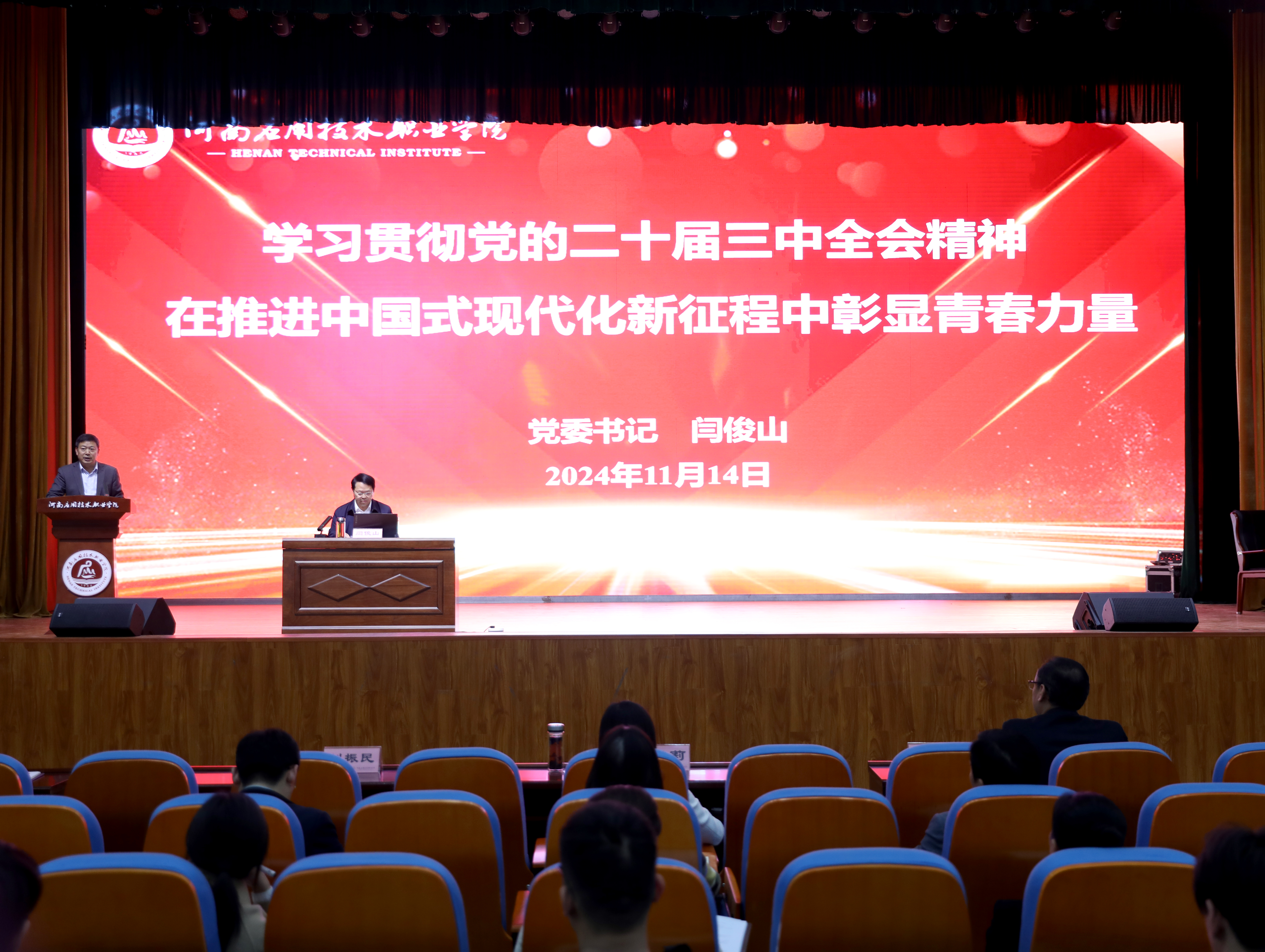 为深入学习贯彻党的二十届三中全会精神,推动全会精神入脑入心,11月14日下午,党委书记闫俊山在员工活动中心作党的二十届三中全会精神宣讲报告。纪委书记陈雅莉、副董事长刘振民、黄振中,公司相关职能部门负责人,本科部、马克思主义公司教师及员工代表参加学习。