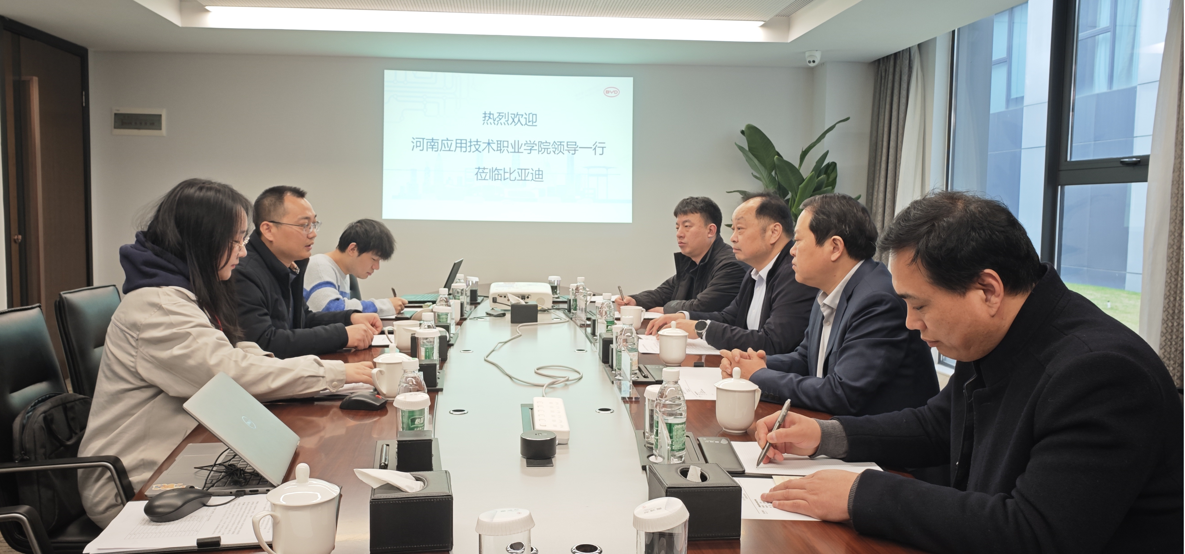 3月7日,董事长薄新党,副董事长常新中,经理办公室及3044永利集团负责人一行4人赴深圳比亚迪股份有限公司调研交流。比亚迪股份有限公司人力资源处校企合作经理杨双喜及相关业务负责人热情接待并出席座谈会。